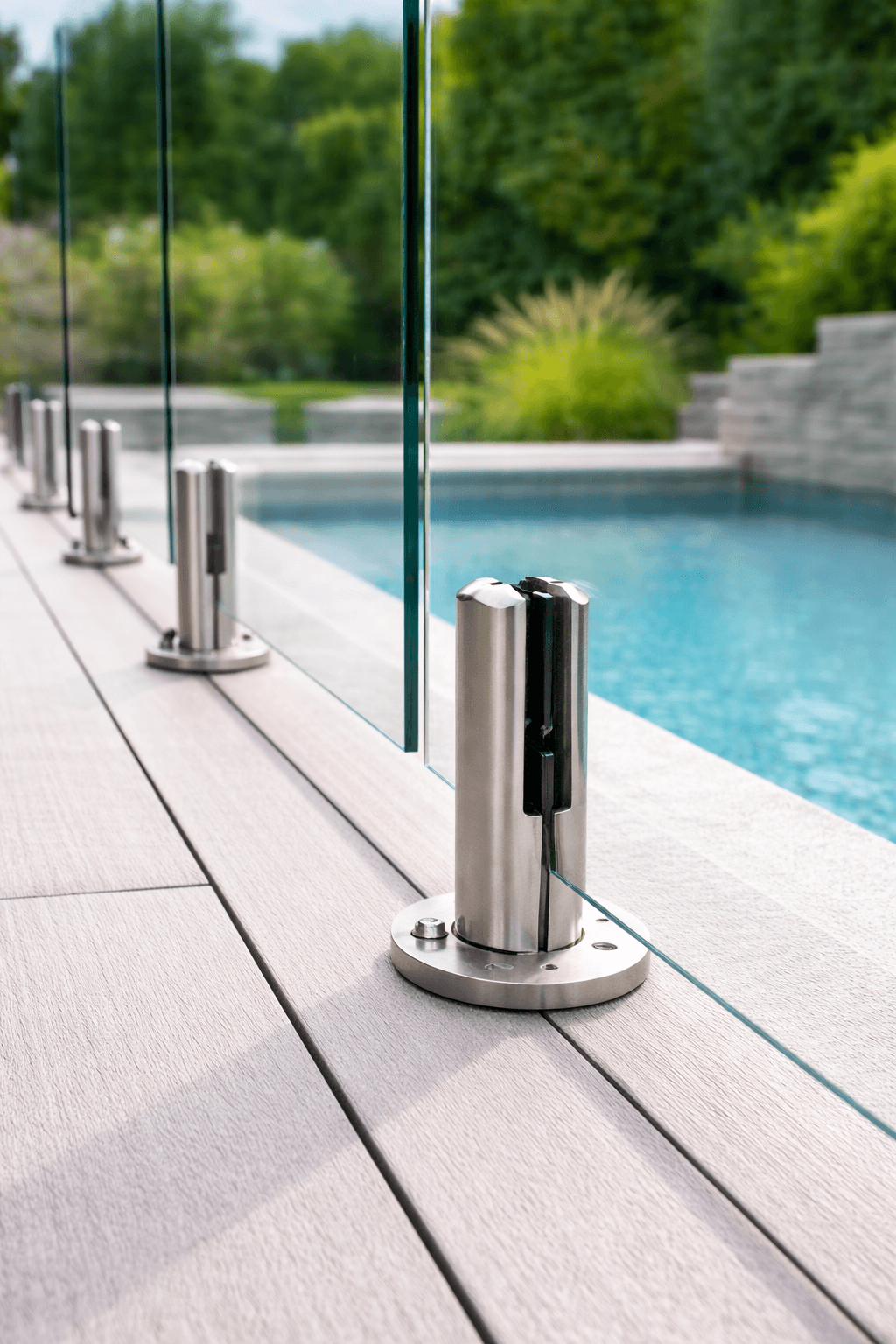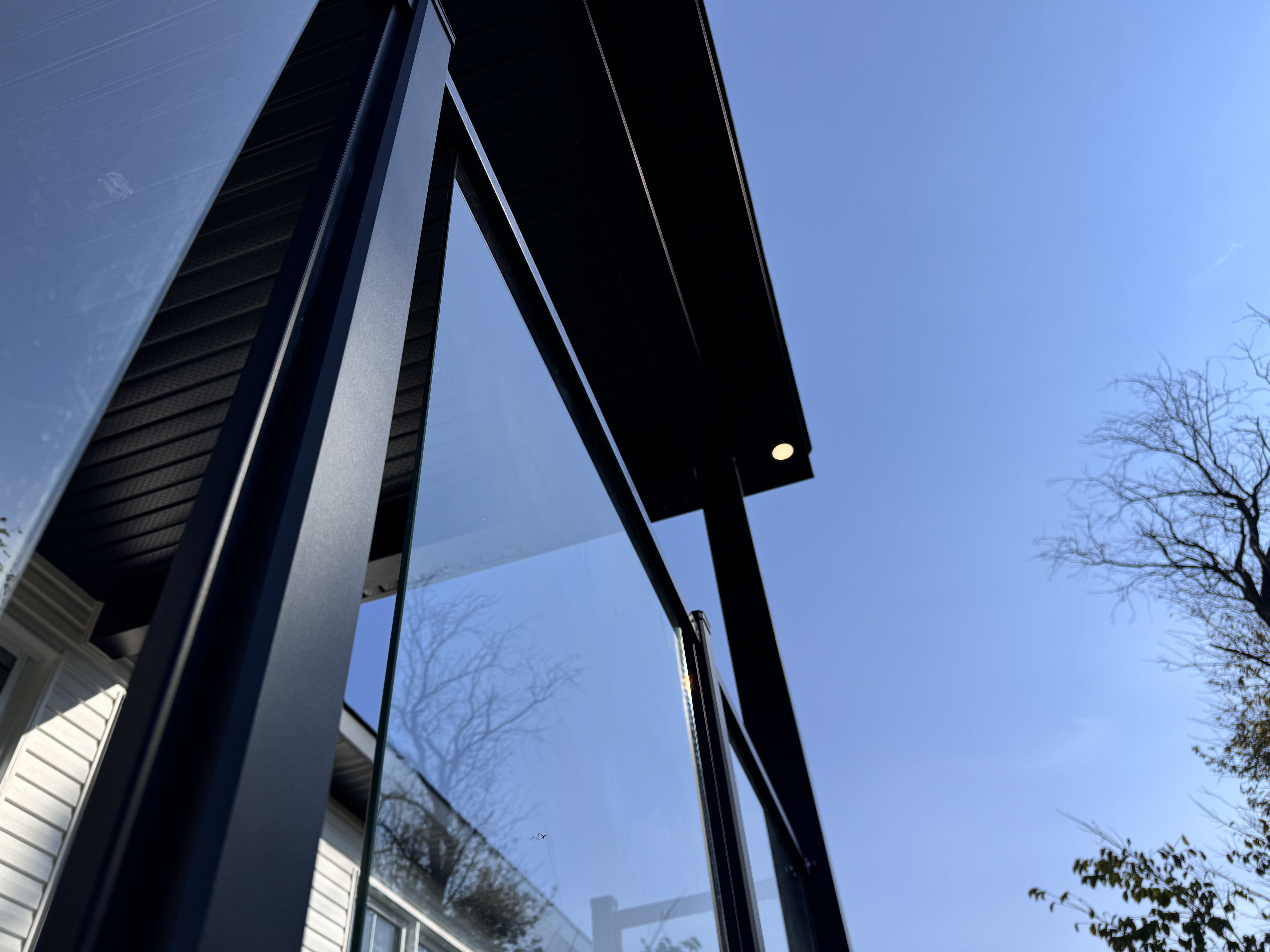 Un verre de 12mm sur spigots : un design minimaliste, sécuritaire et durable, pour une vue entièrement dégagée.